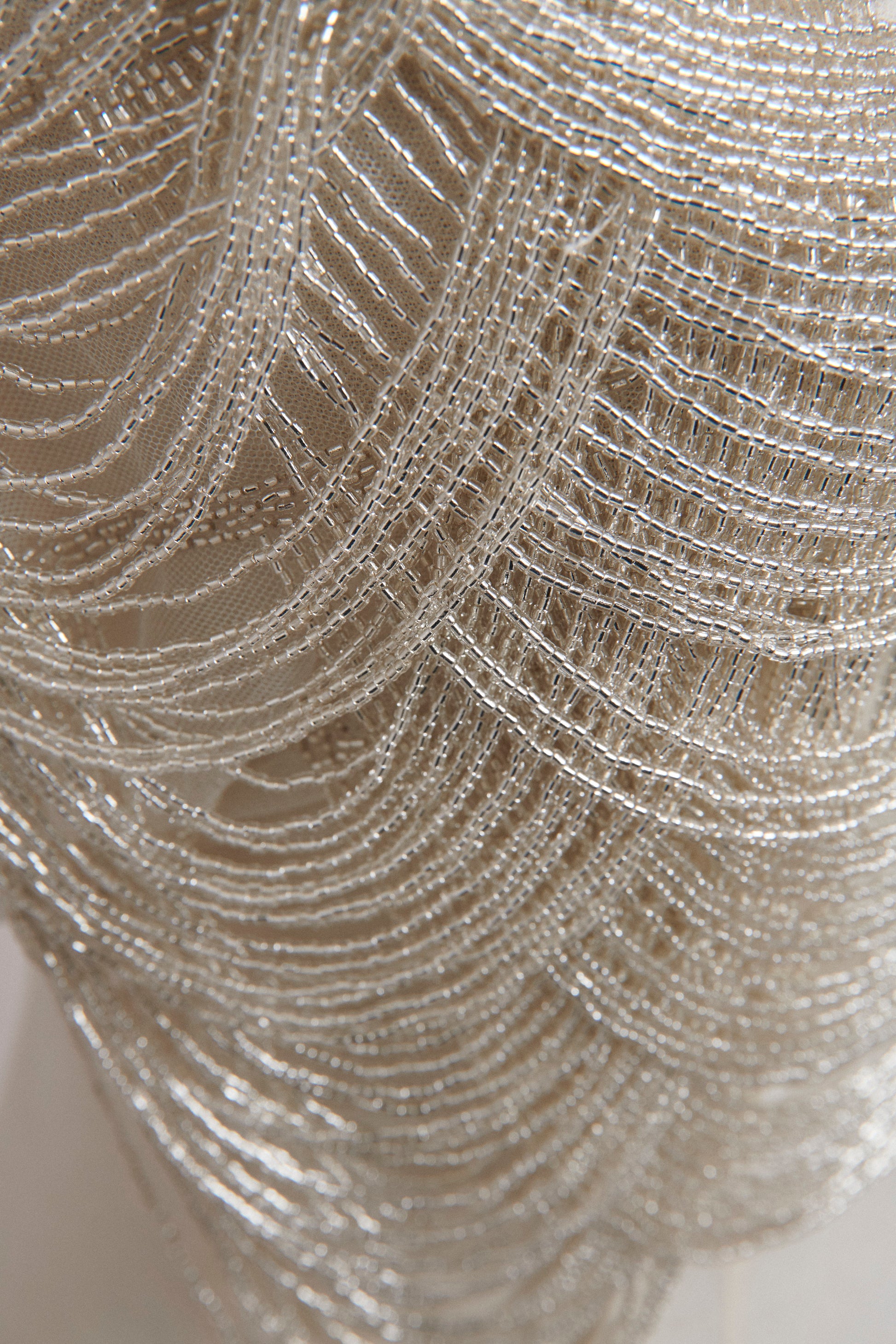 S0586 SILVER - EMBROIDERY TULLE WITH SILVER BEADS