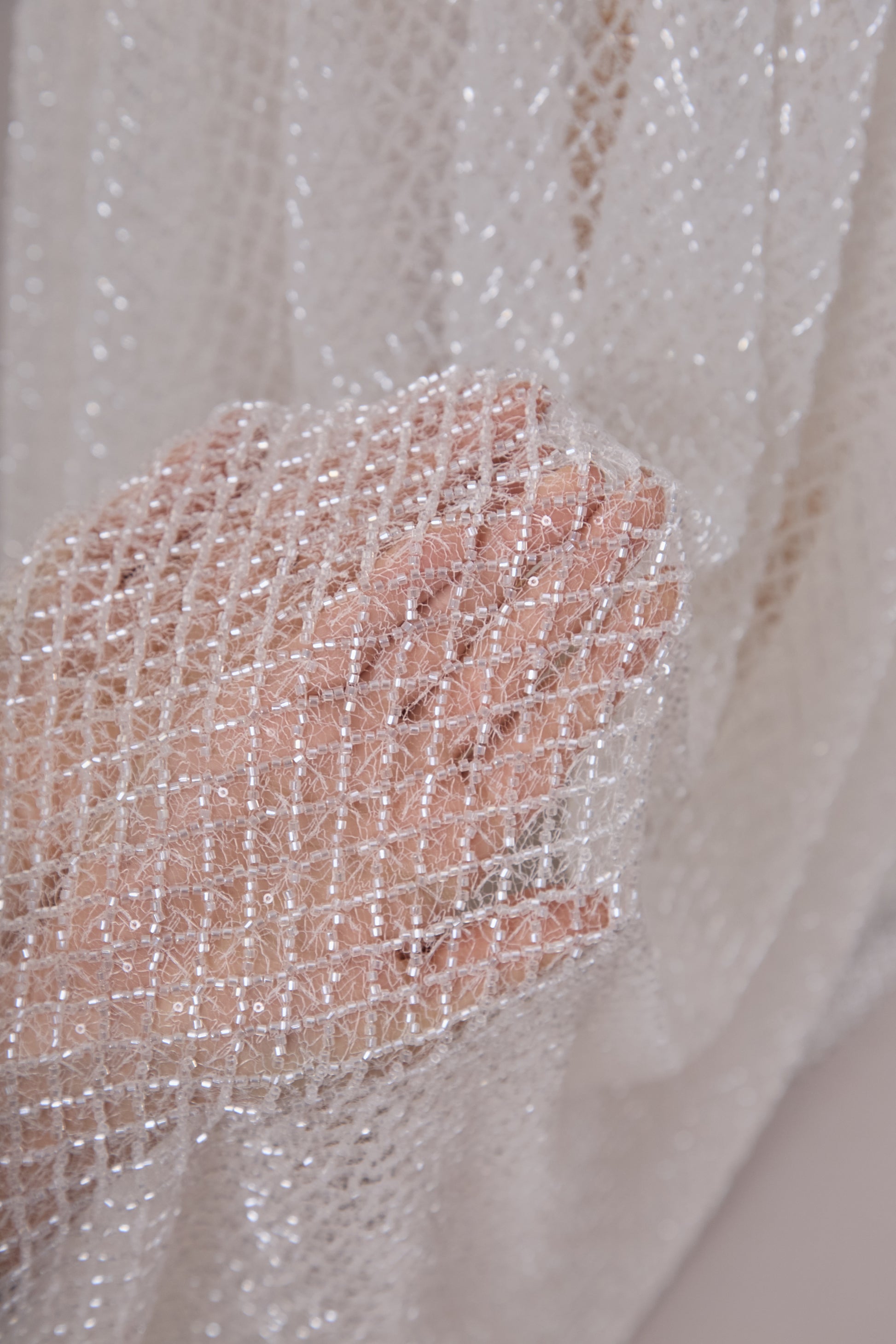 Our embroidered laces are the perfect blend of romantic style with a touch of glamour. The extra sparkle provided by pearls, bugle beads, and hand embroidery will add a unique complement to your outfit. If you are a delicate person who loves to stand out with exquisite style... this is your sign to choose this fabric!